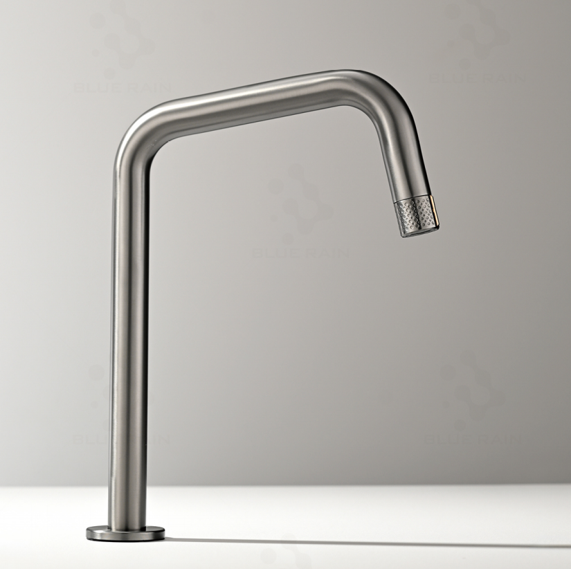同时,关闭传统龙头后,滞留在“出水口”与“开关阀”之间管道内的水,会因重力自然滴落,形成令人不悦的残留水滴,既浪费水资源,也容易在水槽边沿形成水渍和污垢。我们的设计正源于对这一系列细微但持久痛点的洞察:为什么开关不能就在水流的终点?我们将机械开关模块高度集成于龙头的出水端口,实现了“指哪打哪”的直觉式操控,从根本上革新了人与水龙头的交互方式。