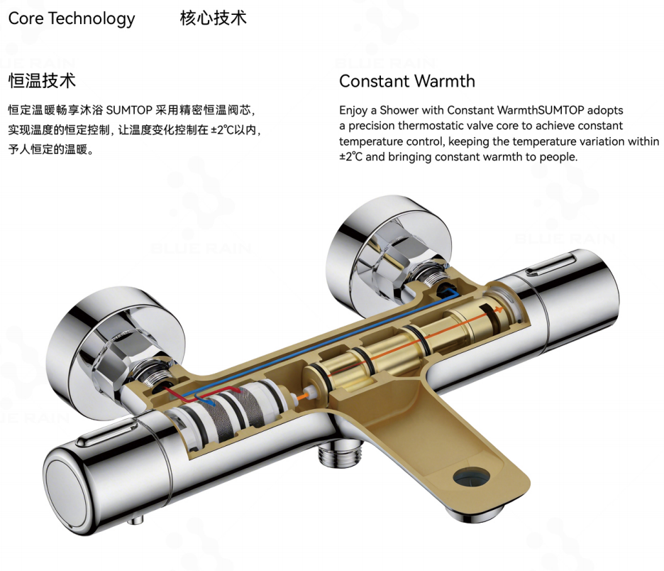 系统核心的守护神:此阀芯是您之前所有创新产品(花洒、龙头、顶喷)的“心脏”与“大脑”。它确保了整个“自适应沐浴系统”的长期稳定运行和基础安全无虞,是整套体验最坚实的基石。